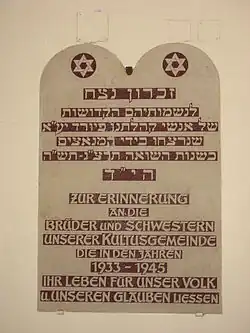 Gedenktafel für die Shoa-Opfer in der früheren Jüdischen Realschule Fürth