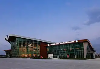 Der Flughafen wurde 1998 dem Betrieb übergeben und ist derzeit für die Militär- und Zivilluftfahrt geöffnet. Nach seiner Eröffnung wurde er zivil und militärisch gemischt genutzt, die Betreibergesellschaft schloss den Flughafen jedoch 2001 für die Zivilluftfahrt und öffnete ihn am 26. Februar 2007 wieder für die Zivilluftfahrt. Er verfügt über einen Terminal mit einer Kapazität von 100.000 Passagieren im Jahr und eine befestigte Start- und Landebahn, die jedoch kein Instrumentenfluglandesystem (ILS) besitzt. Für den Militärbetrieb finden sich zahlreiche Hangars und militärische Einrichtungen.[2]