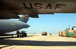 Seit 2001 nutzt die United States Air Force den Flughafen für Zwischenlandungen, als Basis für Luftbetankungsoperationen sowie über den naheliegenden amerikanischen Militärstützpunkt "Camp Sarafovo"[5] auch für den Luftumschlag.[6][7][8] Daher sind neben Tankflugzeugen vom Typ Boeing KC-135 und McDonnell Douglas KC-10 häufig militärische Großraumflugzeuge sowie auch solche ziviler Auftragsnehmer wie beispielsweise Kalitta Air und der Volga-Dnepr Airlines anzutreffen. Sanierung und Modernisierung des Flughafens im Jahr 2001 wurde teilweise mit Mitteln der United States Agency for International Development finanziert.[9][10] Inzwischen wickeln auch die bulgarischen Luftstreitkräfte Transportflüge über den Flughafen Burgas ab.