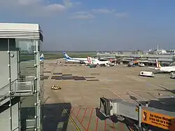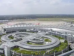 Der Flughafen Düsseldorf (Eigenbezeichnung Düsseldorf Airport, IATA-Code: DUS, ICAO-Code: EDDL) ist der wichtigste Flughafen des Landes Nordrhein-Westfalen. Gemessen am Passagieraufkommen liegt der Düsseldorfer Flughafen in Deutschland hinter Frankfurt, München und Berlin an vierter Stelle, gemessen am Frachtaufkommen liegt er an neunter Stelle.[1] Der Flughafen wurde am 19. April 1927 eröffnet.[2]