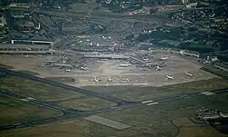 1969 wurde mit den Bauarbeiten für die neue Abfertigungsanlage begonnen, die Hauptstartbahn wurde auf 3.000 Meter verlängert. Das Terminal II (heute: Terminal B) wurde 1973 seiner Bestimmung übergeben.[13] Im Oktober 1975 wurde eine S-Bahn-Strecke (S 7) von Düsseldorf Hauptbahnhof zum Flughafen („Düsseldorf Flughafen Terminal“) eröffnet (heute als S 11 über Köln bis Bergisch Gladbach). Im Jahr 1988 erlebte der Flughafen Düsseldorf einen regen Zuwachs an Passagieren, was aufgrund einer einzigen Start- und Landebahn zu Kapazitätsproblemen führte.