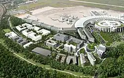 - Bau eines neuen Mietwagenzentrums zwischen dem Parkhaus 5 und dem Kontrollturm der Deutschen Flugsicherung[18]