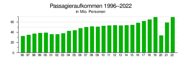 | Jahr | Fluggastaufkommen | Luftfracht (Tonnen) | Luftpost (Tonnen) | Flugbewegungen (mit Militär) | ||