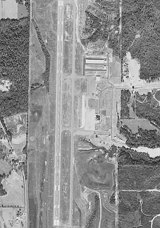 Southern Airways hatte 1955 begonnen, Laurel mit Douglas DC-3-Flugzeugen zu bedienen, die eine tägliche Hin- und Rückflugroute von Memphis – Greenville (Mississippi) – Vicksburg (Mississippi) – Jackson (Mississippi) – Laurel – Gulfport (Mississippi) – Flughafen Mobile (Regional) flogen.[2] Bis 1960 bediente Southern sowohl Laurel als auch Hattiesburg, da jede Stadt zu dieser Zeit ihren eigenen Flughafen hatte, wobei die jeweiligen dreibuchstabigen Flughafencodes LUL und HBG gemäß dem Systemfahrplan der Fluggesellschaft waren, wobei Southern täglich einen DC-3-Rundflugdienst auf einer Route betrieb von Atlanta – Anniston (Alabama) – Birmingham (Alabama) – Selma (Alabama) – Meridian (Mississippi) – Laurel/Hattiesburg – Gulfport (Mississippi) – New Orleans.[3]