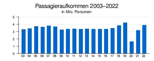 | Jahr | Fluggastaufkommen | Luftfracht (Tonnen) (mit Luftpost) |