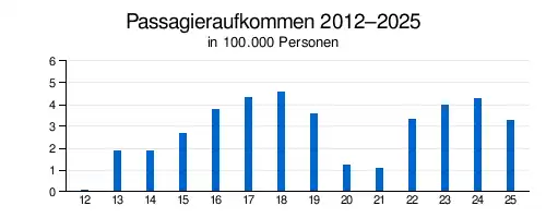 | Jahr | Fluggastaufkommen | Luftfracht (Tonnen) | Flugbewegungen |
