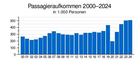 Jahr Fluggastaufkommen Luftfracht (Tonnen) Flugbewegungen