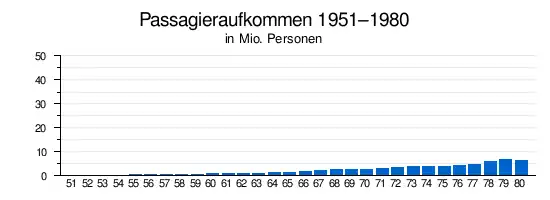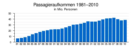 | Jahr | Fluggastaufkommen | Luftfracht (Tonnen) | Luftpost (Tonnen) | Flugbewegungen (mit Militär) | ||