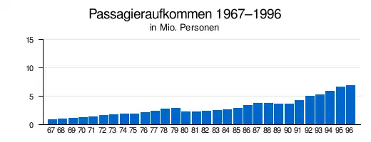 | Jahr | Fluggastaufkommen | Luftfracht (Tonnen) (mit Luftpost) |