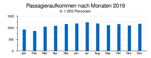 - ↑ Das Gesamtfluggastaufkommen wurde zum Teil später korrigiert und kann von der jeweiligen Summe der Fluggäste auf nationalen und internationalen Flügen abweichen.