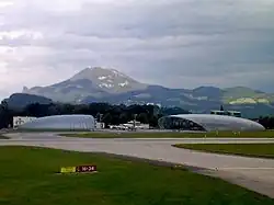 Der Flughafen Salzburg (IATA-Code: SZG, ICAO-Code: LOWS) liegt im Stadtgebiet von Salzburg und ist nach der Anzahl der Flugbewegungen der zweitgrößte Flughafen Österreichs. Der städtische Flugplatz Salzburg ging am 16. August 1926 in Betrieb. Ab 1945 wurde er unter amerikanischer Besatzung Salzburg Airport genannt.[4] Die Flughafenbetreiberin benutzt für den Flughafen auch die Eigenbezeichnung Salzburg Airport W.A. Mozart.[5]