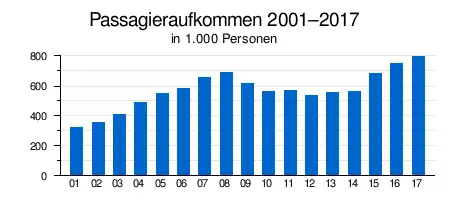 | Jahr | Fluggastaufkommen | Luftfracht (Tonnen) | Flugbewegungen |