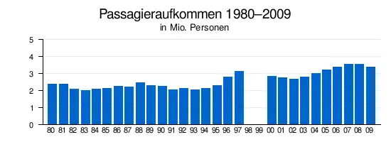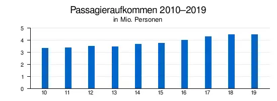 | Jahr | Fluggastaufkommen | Luftfracht (Tonnen) | Flugbewegungen | ||