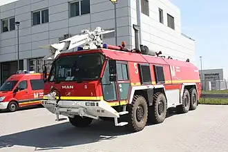 - Zwei baugleiche 1.400 PS[2] starke Flugfeldlöschfahrzeuge Rosenbauer Panther 8x8. Die Fahrzeuge führen neben 12.500 Litern Wasser und 1.500 Litern Schaummittel 500 kg Pulverlöschmittel mit (insgesamt acht Exemplare wurden bestellt, jedoch noch nicht ausgeliefert).