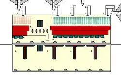 In Center Terminals liegt ein sehr großer Transferanteil von weit über 50 Prozent vor. Ihre Umschlagsleistung beträgt zwischen 250.000 und 1 Million Tonnen. Dazu sind separate Inbound- und Outbound-Warenflüsse eingerichtet.