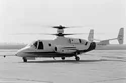 Der von 1936 an entwickelte und 1938 zum ersten Mal geflogene Flettner Fl 185 war mit seinen zwei an Auslegern angebrachten Vortriebspropellern und einem angetriebenen Hauptrotor, einer der ersten Flugschrauber.[8] In den 1950er Jahren folgten die in Großbritannien gebauten Fairey Gyrodyne und Fairey Rotodyne. Die Sikorsky S-61F verfügte über zwei zusätzliche Turbojettriebwerke und erreichte im Juli 1965, noch ohne Tragflächen 390 km/h.[9] Die Bell 533 war eine Weiterentwicklung der UH-1 mit zusätzlichen Strahltriebwerken und gepfeilten Tragflügeln, die 1969 eine Maximalgeschwindigkeit von 508 km/h ermöglichten. Die Bell 533 war der erste Drehflügler, der 400 km/h überschreiten konnte.[10][11] Im Rahmen eines amerikanischen Versuchsprogramms wurden ab den 1980er Jahren mit der Boeing X-50 und Sikorsky X-wing eine zu den Wandelflugzeugen gehörende konstruktive Auslegung getestet, bei denen der Rotor im Horizontalflug gänzlich stillgelegt wird und als zusätzliche Tragfläche wirkt.