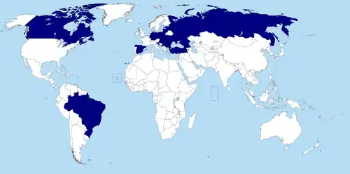 9 Tage: Polen; 4 Tage: Litauen; 3 Tage: Brasilien; 2 Tage: Tschechien; 1 Tag: Bulgarien, Deutschland (am 18. April 2010), Estland, Georgien, Kanada, Kap Verde, Kroatien, Lettland, Moldawien, Montenegro, Rumänien, Russland, Serbien, Slowakei, Spanien, Türkei, Ukraine, Ungarn; zudem in Belarus (6 Stunden?, nicht markiert, unsichere Quellenlage)