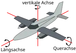 | Flächenleitwerk | Querruder und Störklappe | Drehung um die Längsachse (Rollen) | X-Achse |