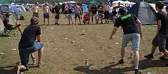 Zwei Teams stehen sich, jeweils in Reihe aufgestellt, in einer Entfernung von etwa 10 Metern gegenüber. Die Anzahl der Mitspieler eines Teams ist nicht einheitlich festgelegt; geläufig sind Teamgrößen zwischen 3 und 8 Personen. Jeder Spieler hat eine Bierflasche oder -dose vor sich auf dem Boden stehen. Zwischen den beiden Teams in der Mitte des Spielfeldes befindet sich ein Ziel, üblicherweise eine viertel- bis halbvolle PET-Flasche, die von einem Ball getroffen und umgekippt werden sollte. Das Team mit dem Ball hat einen Versuch, das Ziel mit dem Ball zu treffen. Fällt das Ziel um, darf die Mannschaft, die geworfen hat, Bier trinken. Das gegnerische Team muss das Ziel wieder aufstellen und den Ball hinter die eigene Linie bringen. Sobald das gegnerische Team das Spielfeld wiederhergestellt hat, ruft es laut „Stopp“, worauf das Team, welches geworfen hat, aufhören muss zu trinken. Wenn beide Teams wieder bereit sind, darf das andere Team werfen. Sobald ein Team alle seine Biere ausgetrunken hat, hat dieses das Spiel gewonnen.[2]