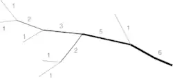 Nach Shreve erhalten die äußersten Zuflüsse ebenfalls die Ordnung eins. Beim Zusammenfluss addieren sich jedoch die Ordnungszahlen.