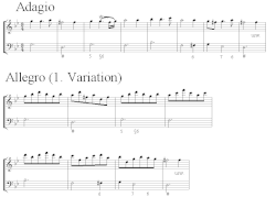 Die erste Hälfte des Foliathemas mit Variation (nach Arcangelo Corelli), transponiert nach g-Moll
