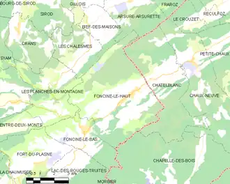 Nachbargemeinden von Foncine-le-Haut sind Les Chalesmes, Bief-des-Maisons und Arsure-Arsurette im Norden, Châtelblanc im Osten, Chapelle-des-Bois im Süden sowie Foncine-le-Bas und Les Planches-en-Montagne im Westen.