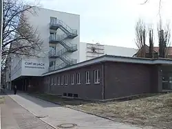 Südlich daneben hat die Carl-von-Ossietzky-Schule, seit 2011 Gemeinschaftsschule, einen Nebeneingang. Die postalische Adresse des Schulkomplexes lautet allerdings Blücherstraße 46/47.[29] Der gesamte Schulkomplex samt großer Sportflächen entstand um 1970 anstelle der früheren Kasernen und des Militärwaschhauses.
