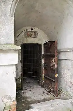 Einer der Zugänge zu den guterhaltenen, betongedeckten Kasematten im Zentralbereich des Innenhofs – früher vermutlich als Munitionslager genutzt