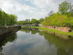 Um 1900 war der Festungsgürtel längst veraltet. Die 1671 erbaute Garnisonkirche und das Zeughaus (1796) im Fort Friedrichsburg wurden 1892 abgerissen. Die Oberbürgermeister Siegfried Körte und Hans Lohmeyer betrieben die Entfestigung der Stadt und die Umwandlung der Wälle in Grünanlagen. Der erste Mauerdurchbruch erfolgte 1906 am Wrangelturm.[11] 1910 konnte die Stadt den 318 ha großen Wallgürtel für 29 Millionen Mark vom preußischen Staat kaufen.[12] Es wurden 10 Jahresraten vereinbart; bei den letzten Raten half die Inflation nach dem Ersten Weltkrieg.