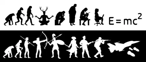Jede Entwicklung menschlicher Kulturen ist dem begrenzten, lückenhaften und fehlbaren Urteilsvermögen des Menschen unterworfen.[27] Diese Erkenntnis führte bei den mythisch-erdverbundenen Jäger-und-Sammler-Kulturen zu einer großen Skepsis gegenüber den menschlichen Fähigkeiten. Die Erfolge der neolithischen Revolution stärkten jedoch das Selbstvertrauen der Ackerbauern und Viehzüchter, so dass ein Gefühl für die Gestaltbarkeit der Überwindung der Natur und später auch der Politik und Gesellschaft einsetzte, die zu den heutigen Zivilisationen führte. Widersprüche und Rückschläge in der Geschichte erinnerten den Menschen währenddessen nach wie vor an seine Fehlbarkeit.
