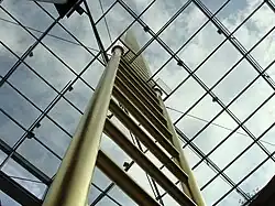 Als Besonderheit gilt die 65 m hohe, mit feuerveredeltem Blattgold beschichtete Stahlkonstruktur „goldene Leiter“, die das Forum schon von weitem erkennbar macht.