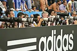 Die Digitalfotografie des 21. Jahrhunderts hat sowohl zu einer stärkeren Konkurrenz als auch zu einer Beschleunigung auf dem Gebiet der Sportfotografie geführt. Die leichtere Verfügbarkeit leistungsstarker Kamerasysteme hat dafür gesorgt, dass der Markt für gute Sportbilder heute stärker umkämpft ist als noch zu Zeiten der analogen Fotografie.[42] Darüber hinaus bearbeiten Sportfotografen ihre Werke heute nicht selten vor Ort und schicken sie noch vom Spielfeldrand an ihre Redaktionen, während diese in früheren Zeiten noch viel Aufwand in die Entwicklung von Filmen stecken mussten.