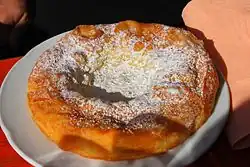 Durch diesen Vorgang ist ein Gebäck entstanden, das außen aus einem etwa drei Zentimeter hohen Teigwulst in goldbrauner Farbe besteht, im Geschmack dem Krapfenteig ähnelt und innen eine dünne Teigkruste besitzt, die fast durchsichtig ist.