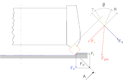 Jede Schneide des Fräswerkzeugs übt auf das Werkstück die Zerspankraft Fges aus. Sie setzt sich aus der Hauptschnittkraft Fc (cutting force) in Richtung der Schnittbewegung (also tangential), der Schnittnormalkraft FcN in Richtung normal zur Schnittbewegung und der Passivkraft Fp in Richtung der Drehachse des Werkzeugs zusammen. Die Zerspankraft Fges ist die vektorielle Summe der Kräfte Fc, FcN und Fp.