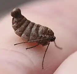 Die Palpen sind sehr kurz, die Fühler sind leicht gezähnt. Der Saugrüssel ist verkümmert. Die Tibien der Hinterbeine besitzen vier Dorne, die bei den Weibchen sehr kurz sind.