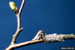 Die Weibchen legen die Eier bandförmig dicht um kleine Zweige und bedecken sie mit Schuppen ihres Hinterleibes. Die Raupen leben einzeln, sind nachtaktiv und fressen an verschiedenen Laubbäumen und -sträuchern, wie z. B.:[5][3][1][4]