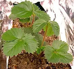- 'Florika' (1989) – ('Sparkle' × F. vesca 'Semperflorens' 4×) × 'Klettererdbeere Hummi'[4]
