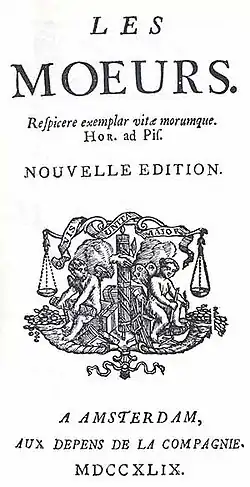 - Deutsche Ausgabe: Die Sitten. Frankfurt, Leipzig 1749 und öfter.