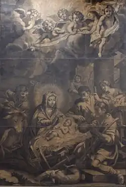 - Anbetung der Hirten (217 × 148 cm) nach Pietro da Cortona, Imperial folio von 9 Platten, ein Exemplar im Kupferstichkabinett Dresden