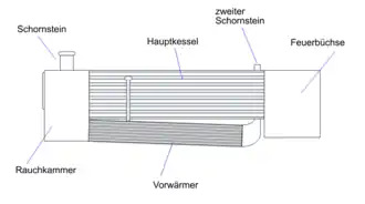 Wie bei allen Dampflokomotiven wurden die Rauchgase in der Feuerbüchse erzeugt und von hinten nach vorne durch den Langkessel in die Rauchkammer geleitet, damit Dampf entsteht. Bei der Franco-Crosti-Lokomotive wurden sie von der Rauchkammer in den Vorwärmerkessel geleitet und nicht wie bei einer gewöhnlichen Dampflokomotive nach der Rauchkammer über den Schornstein ausgestoßen. In der Rauchkammer erfolgte eine Umlenkung der Rauchgase um 180° wieder nach hinten in Richtung Führerstand. Danach erst gelangten die Rauchgase in den Schornstein, der deshalb seitlich angebracht werden musste. Je nach Lokomotive waren ein oder zwei Vorwärmkessel vorhanden, die sich entweder neben oder, wie im Bild, unter dem Langkessel des Fahrzeugs befanden. Diese heizten mit ihren Rauchgasen das Wasser vor, mit dem der Kessel gespeist wurde.