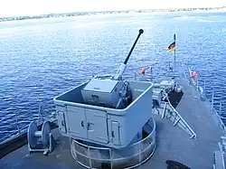 Für Wach- und Sicherungsaufgaben werden wenigstens zwei Maschinengewehre MG3, drei Gewehre G36, drei Maschinenpistolen MP2 sowie zwei Pistolen P8, Handgranaten sowie eine einläufige und eine doppelläufige Signalpistole an Bord mitgeführt.
