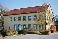 Im Niederdorf an der Alten Straße befindet sich die 1958 als Erntekindergarten eröffnete Kindertagesstätte Pusteblume, deren Träger die Arbeiterwohlfahrt ist.[10] Ihr Domizil ist der ehemalige Gasthof Zur Börse, in dem die Gemeinde im Jahr 1957 einen Kindergarten und Schulhort einrichten ließ.