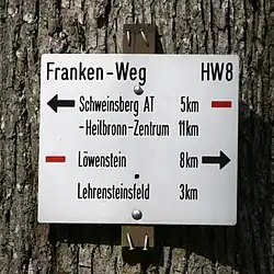 - Willi Beck: HW 8 Franken, HW 10 Stromberg–Schwäbischer Wald. Theiss, Stuttgart 1984, ISBN 3-8062-0394-6 (Hauptwanderwege des Schwäbischen Albvereins)