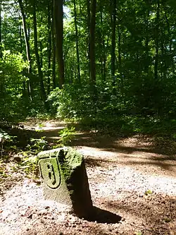 - ↑ Stadt Frankfurt am Main, Forstamt (Hrsg.): Historischer Wanderweg Schwanheim. Darin: Kapitel Grenzschneise und Grenzsteine, S. 36 ff.