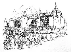 1224 musste Heinrich III. in England die Rebellion von Falkes de Bréauté niederschlagen. Der französische König Ludwig VIII., der 1223 seinem verstorbenen Vater auf den Thron gefolgt war, nutzte die Schwäche des englischen Königs aus und bereitete einen Angriff auf das Poitou vor. Am 24. Juni 1224 sammelte er seine Armee bei Tours, und nachdem er Aimery VII., den Vicomte de Thouars auf seine Seite gezogen hatte, fiel er in das Poitou ein. Nach zweitägiger Belagerung eroberte er am 5. Juli Niort und in der Folge weitere Städte, worauf sich Savary de Mauléon, der englische Seneschall des Poitou, nach La Rochelle zurückzog. Am 15. Juli begann Ludwig die Belagerung der Stadt. La Rochelle kapitulierte bereits am 3. August, da die Bürger in einem jahrelangen Kleinkrieg mit dem Vicomte de Thouars und anderen Vasallen des französischen Königs keine Unterstützung durch den englischen König erhalten und deshalb das Vertrauen in seine Herrschaft verloren hatten.[1] Die englische Besatzung durfte die Stadt verlassen. Auch Savary de Mauleon reiste vermutlich nach England, um seine Unschuld an der Übergabe zu beteuern. Dort wurde er jedoch für die Eroberung des Poitou verantwortlich gemacht, so dass er nach Frankreich floh und in den Dienst des französischen Königs trat.[2]