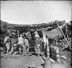 Die Reservedivisionen, die während der Mobilmachung aufgestellt wurden, erhielten jede drei Gruppen, von denen jede durch ein Feldartillerieregiment neu aufgestellt wurde. Die vier Reservedivisionen, die durch die 14. und 15. Militärregion aufgestellt wurden, verfügten jede über drei Batterien 75-mm- und sechs Batterien 65-mm-Kanonen (anstelle der 75-mm-Kanonen). Zusammen waren das 201 Batterien mit 804 Geschützen. Die Territorialdivisionen[note 4] wurden am Ende der Mobilmachung errichtet und verfügten über je eine (für die Territorialdivisionen der Festen Plätze) oder zwei (für die Territorial-Felddivisionen) Gruppen Artillerie. Insgesamt waren hier 48 Batterien mit 192 Geschützen vorhanden. Weiterhin wurden auch bei der Territorial-Artillerie Gruppen mit der 75-mm-Feldkanone errichtet.