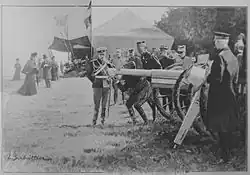 | Canon de 90 mm modèle 1877 | 1210 kg | 1 bis 2 Schuss/min | 6,8 km | Schrapnell: 8,6 kg, Sprenggranate: 8 bis 8,4 kg |