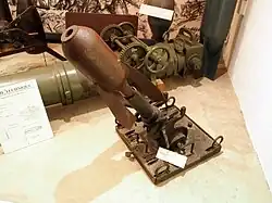 - Eine Lafette mit einem Erdsporn, der den Rücklauf des Geschützes aufhielt. Beim ersten Schuss grub sich dieser in den Boden ein und stabilisierte das Geschütz bei allen weiteren Schüssen zusätzlich. Der Sporn konnte noch zusätzlich eingegraben werden, um die Rohrerhöhung und damit die Reichweite des Geschützes zu vergrößern.