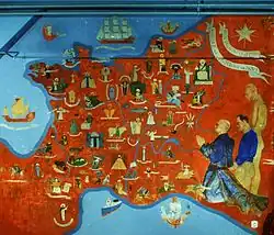 • Ostwand: Eine Frankreichkarte ohne Grenzen mit Darstellungen der Heiligen Frankreichs.