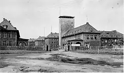 Eingangsbereich der Kaserne, in der sich die Kapelle befindet, historisches Foto